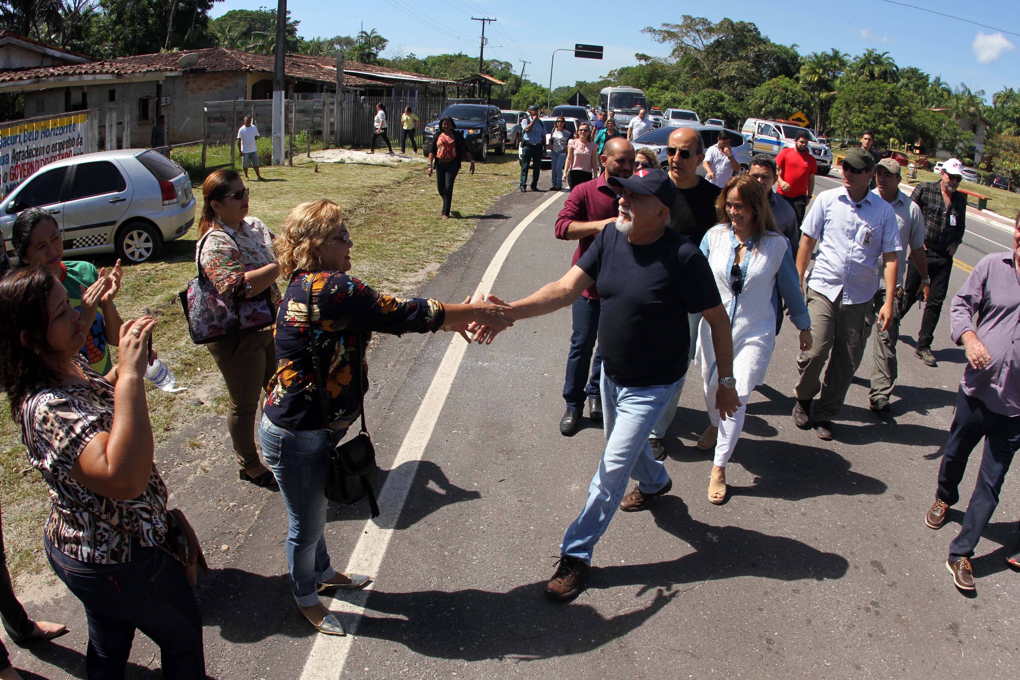 O governador Simão Jatene entregou, na manhã desta terça-feira (18), a nova pavimentação asfáltica de três trechos de rodovias estaduais. Na comunidade de Santa Maria, na PA-151, localizada entre o trevo do Arapari e a cidade de Barcarena, o governador assinou três ordens de serviço das obras relativas à rodovia Moura Carvalho, dos acostamentos da PA-151, desde a rotatória do trevo Jerônimo Rodrigues (no entroncamento com a PA-252), até a cidade de Igarapé-Miri; e dos acostamentos da Colônia Velha, de Abaetetuba, até a cidade de Abaetetuba.