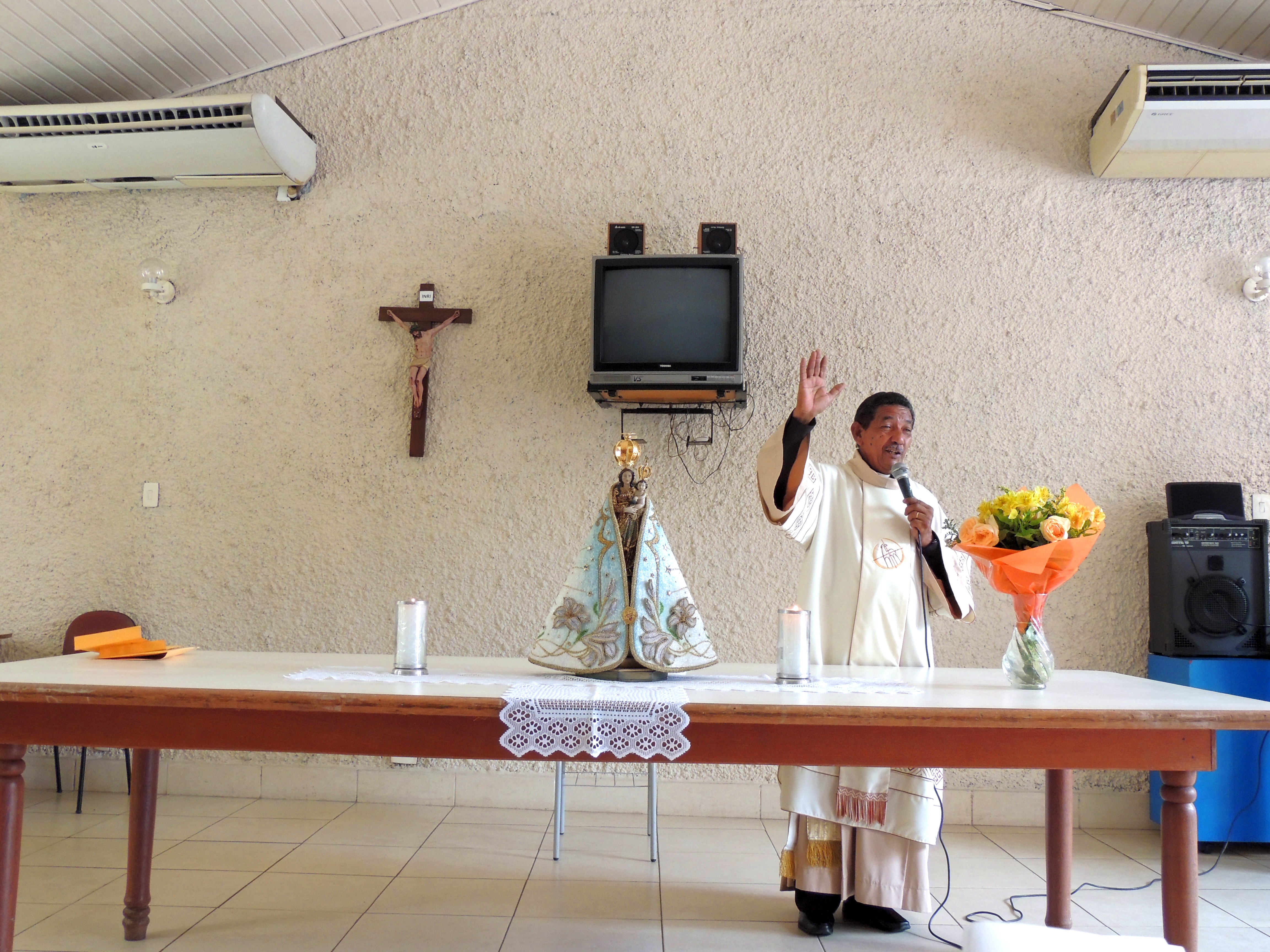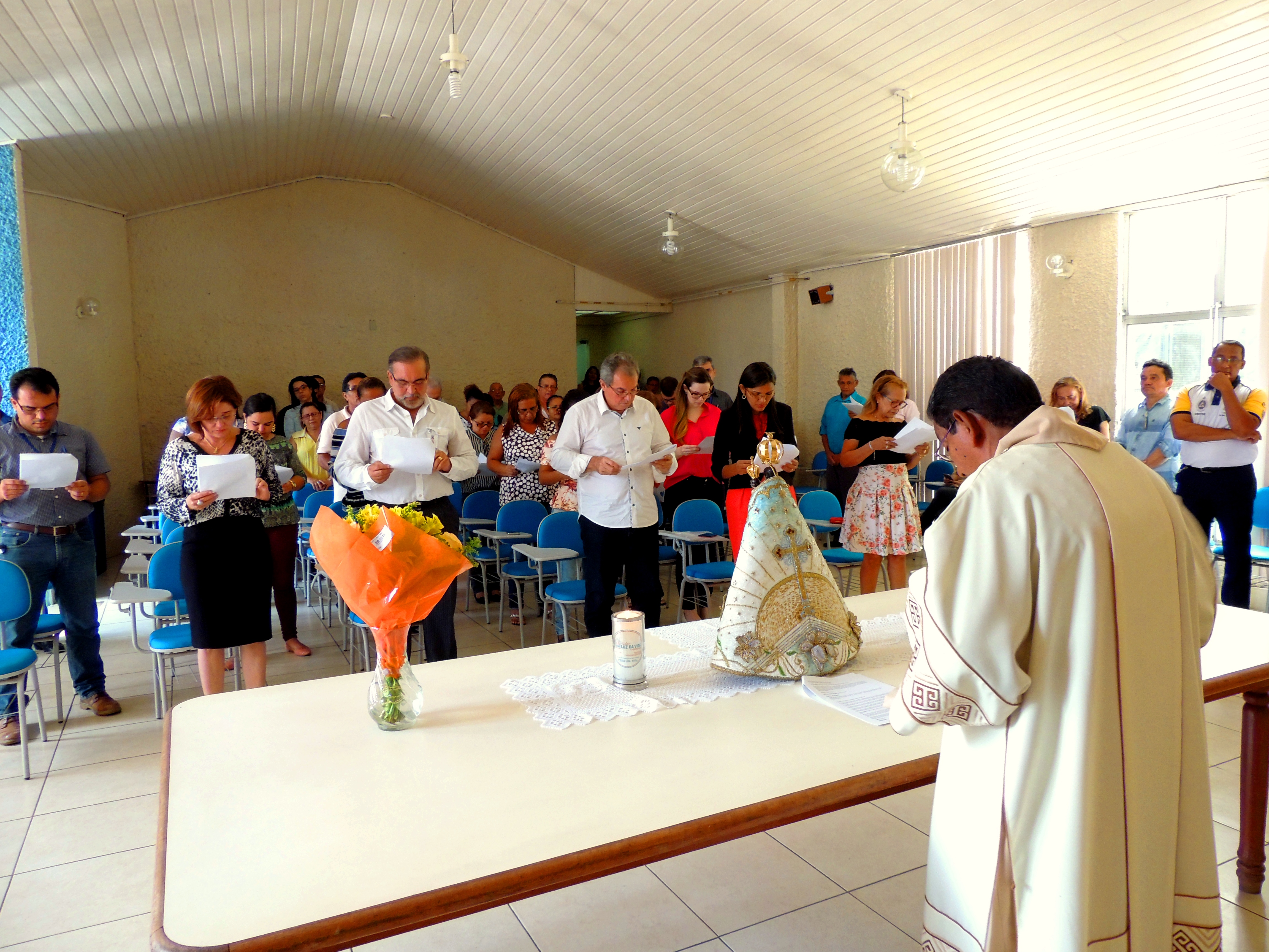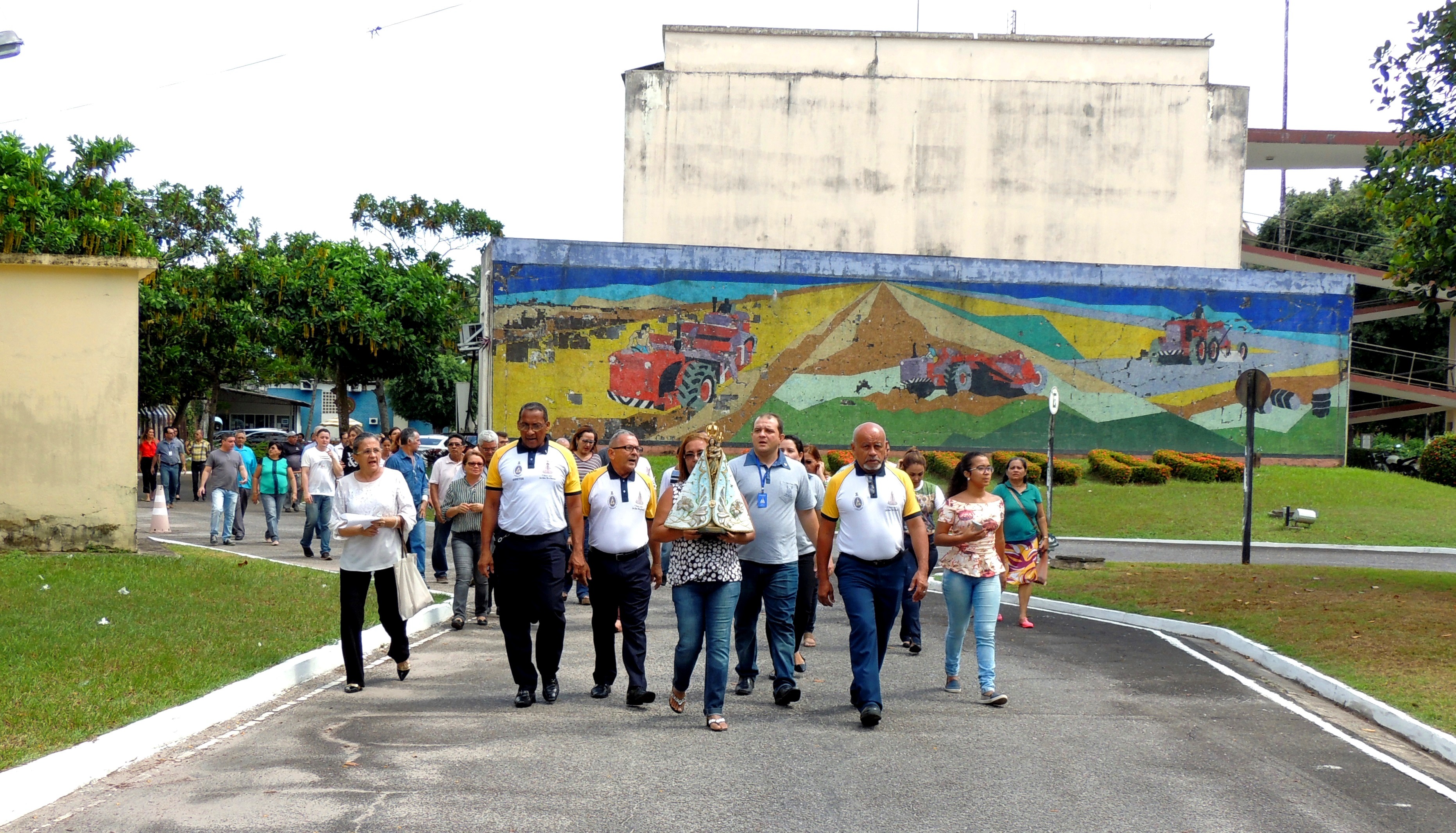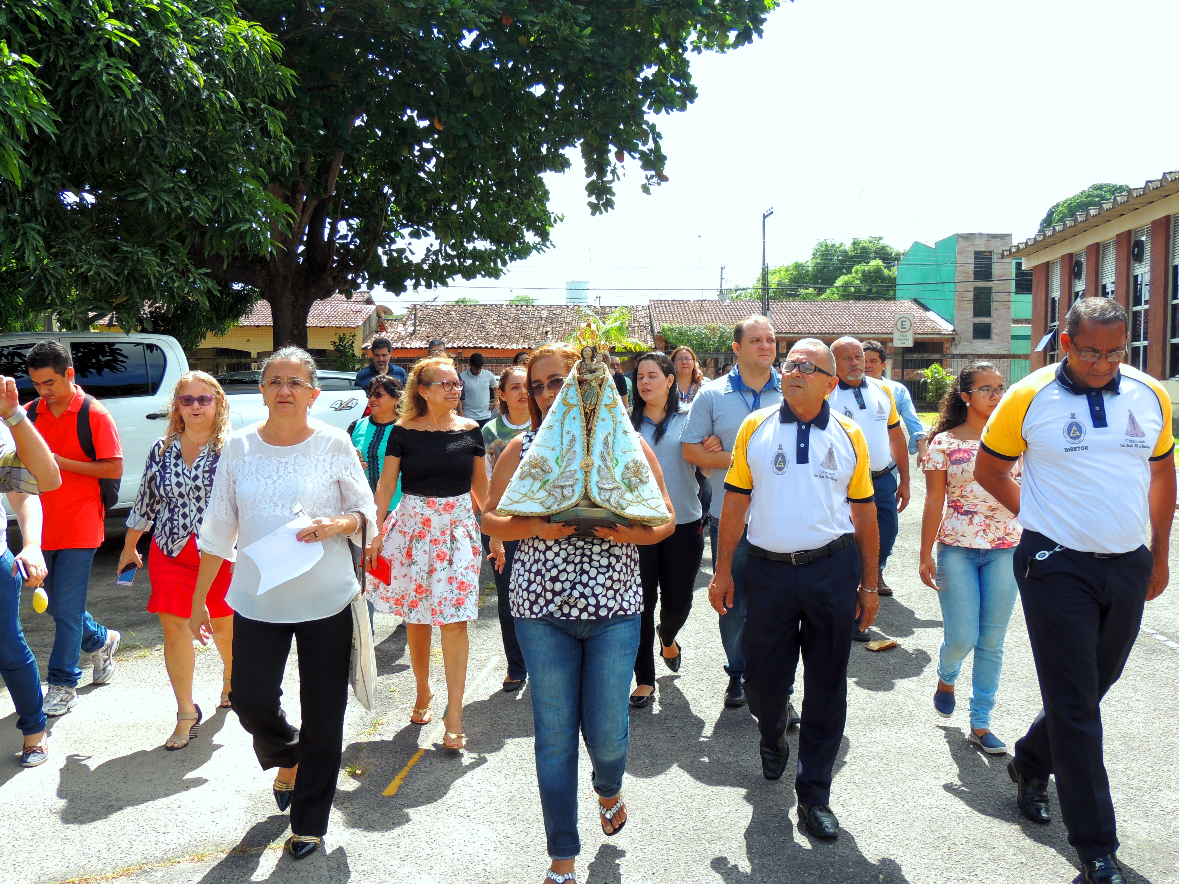 Organizado por Fátima Mota, da Diretoria Técnica, o evento contou com mais de 70 participantes, que percorreram, em procissão, os diversos espaços da sede da Secretaria, em torno do edifício “Affonso Freire”, desde a oficina, passando pelo Posto Médico, pela Gruta que guarda uma grande imagem de Nossa Senhora de Nazaré, pela guarita de entrada, até o auditório da Secretaria, onde foi celebrada uma missa pelo Diácono Francisco, da Paróquia de São Sebastião, no bairro da Sacramenta, que contou com a participação do Coral Saúde e Vida – Maria Helena Franco, regido pelo maestro Jeremias Progenio.