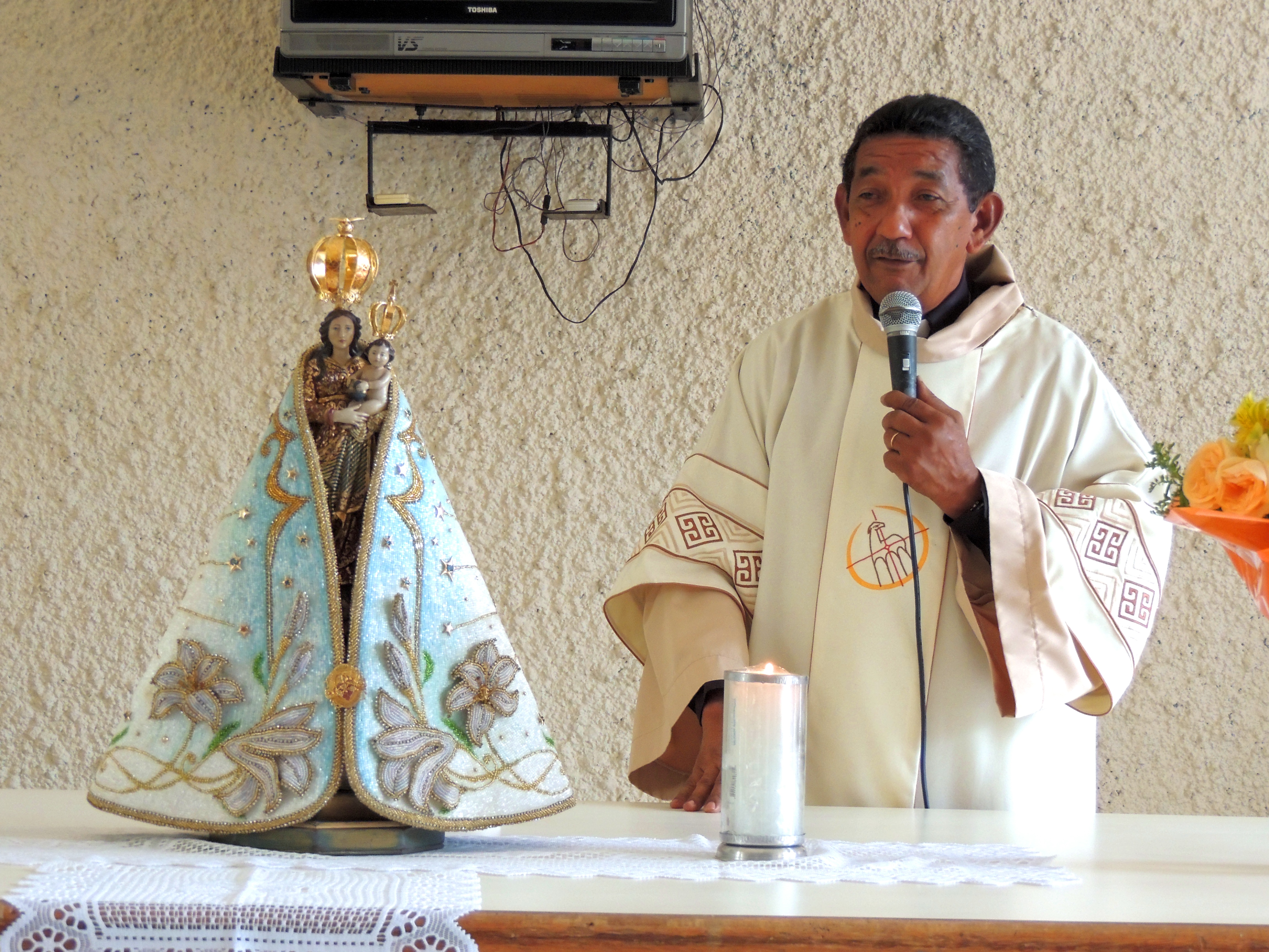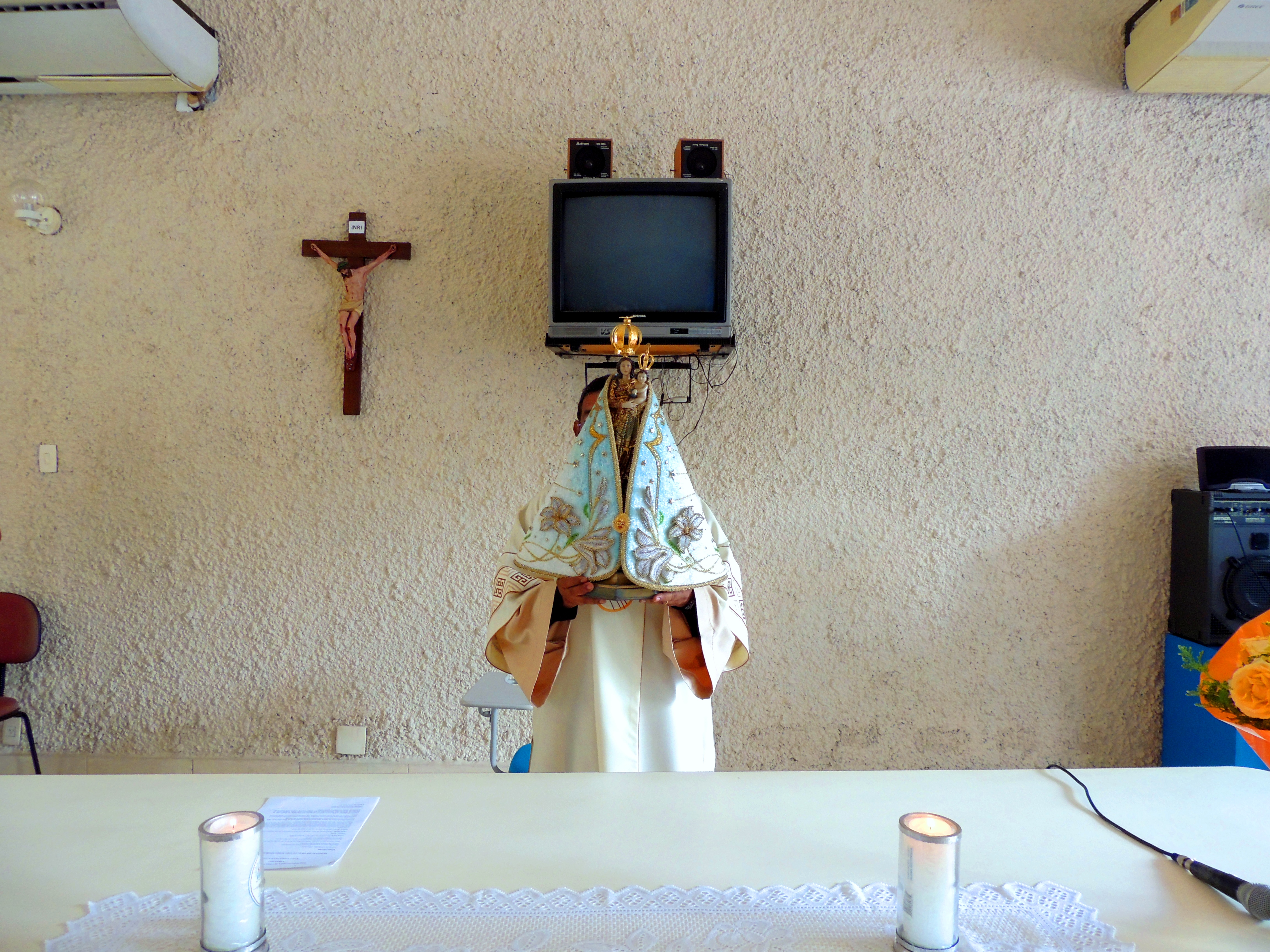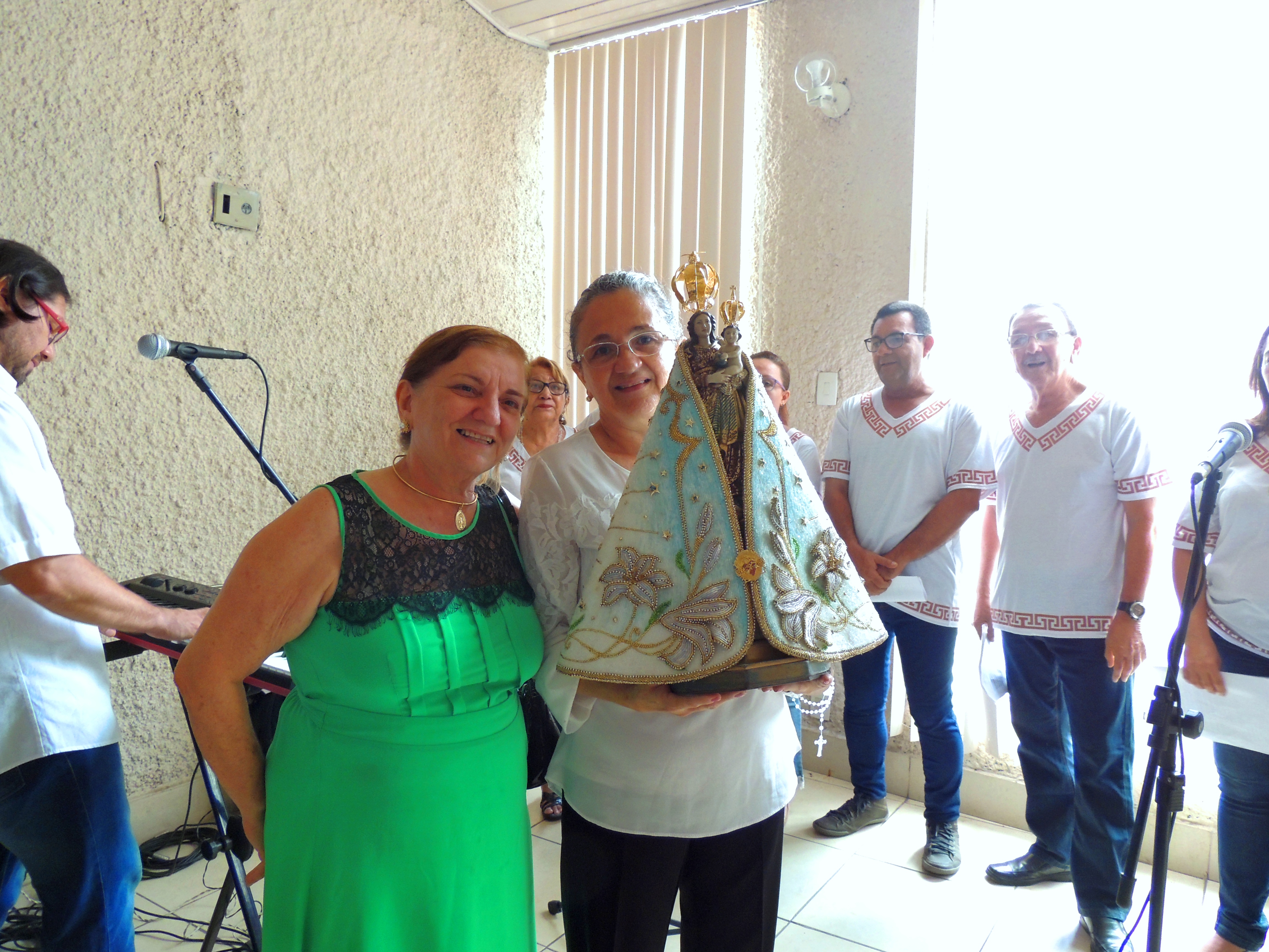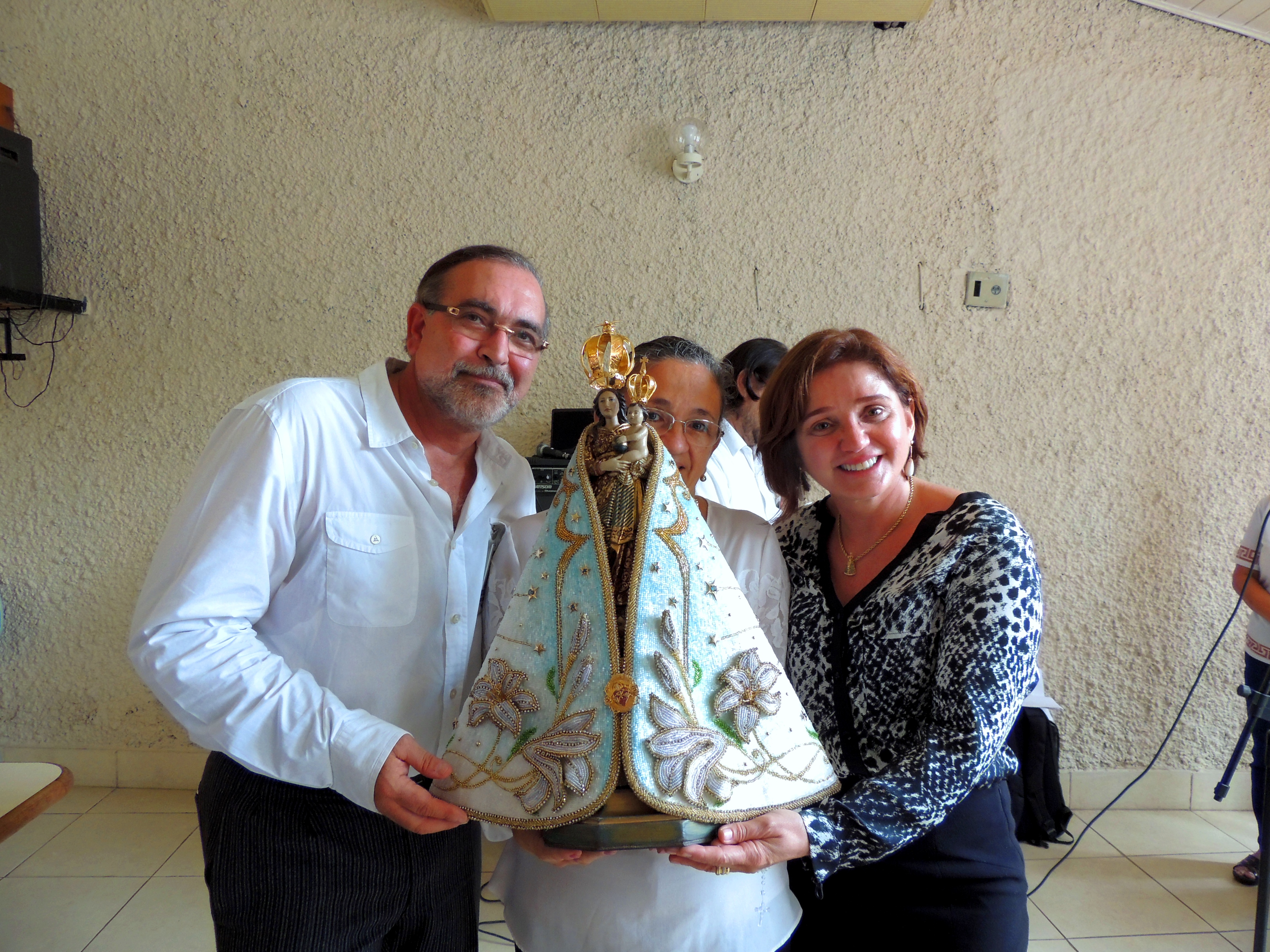 Na chegada ao hall de entrada da Setran, a imagem da santa foi recebida com muita emoção pela senhora Lastênia Menezes, esposa de Kleber Menezes, Secretário de Transportes, que a conduziu até o local da missa.