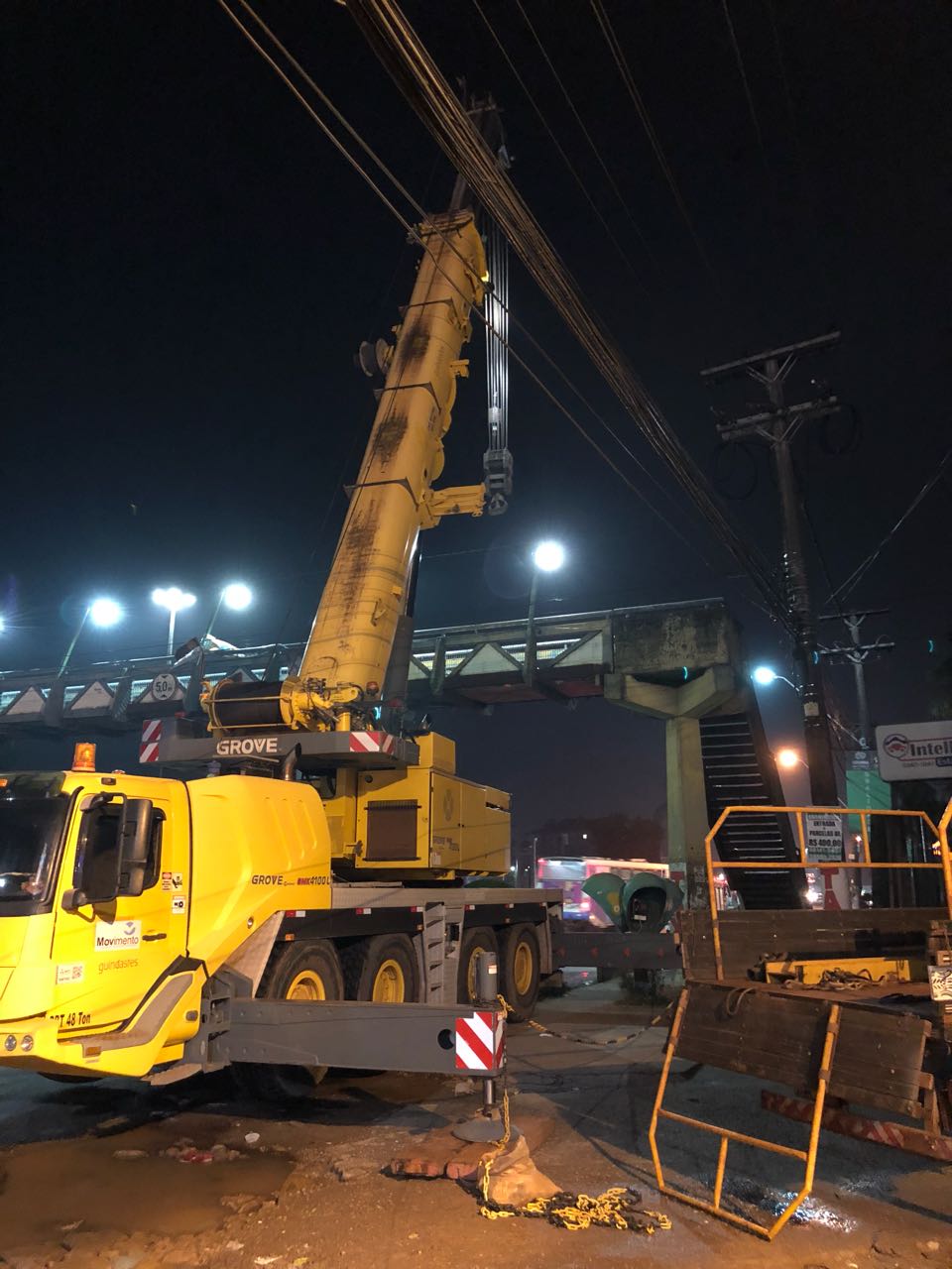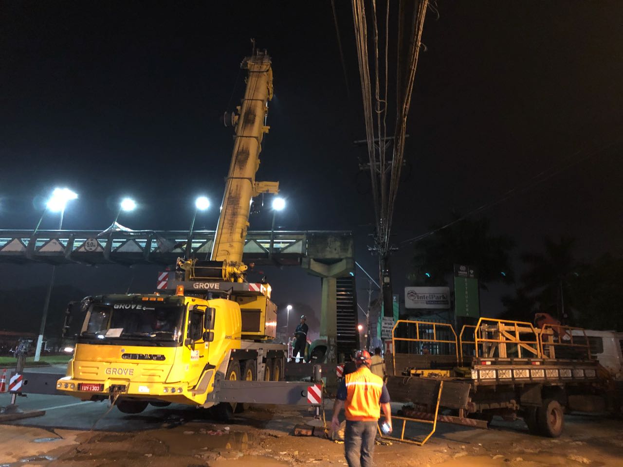 Um guindaste com capacidade de sustentação de 100 toneladas foi instalado na madrugada de hoje (19) sob a passarela localizada no Km 3 da Rodovia BR-316, que recebeu a indicação de interdição pela Defesa Civil na última sexta-feira (15).