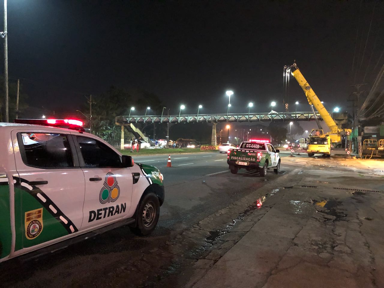A Defesa Civil interditou a passarela de zero hora a 1h30 da madrugada de hoje (19), durante a instalação do guindaste. Segundo o Major Alfaro, do Corpo de Bombeiros Militar de Ananindeua, “esta foi uma decisão acertada da Setran, pois todos os esforços foram feitos para causar o mínimo de impacto à mobilidade da população. Fizemos uma interdição temporária e a desinterdição logo após a instalação do guindaste”.
