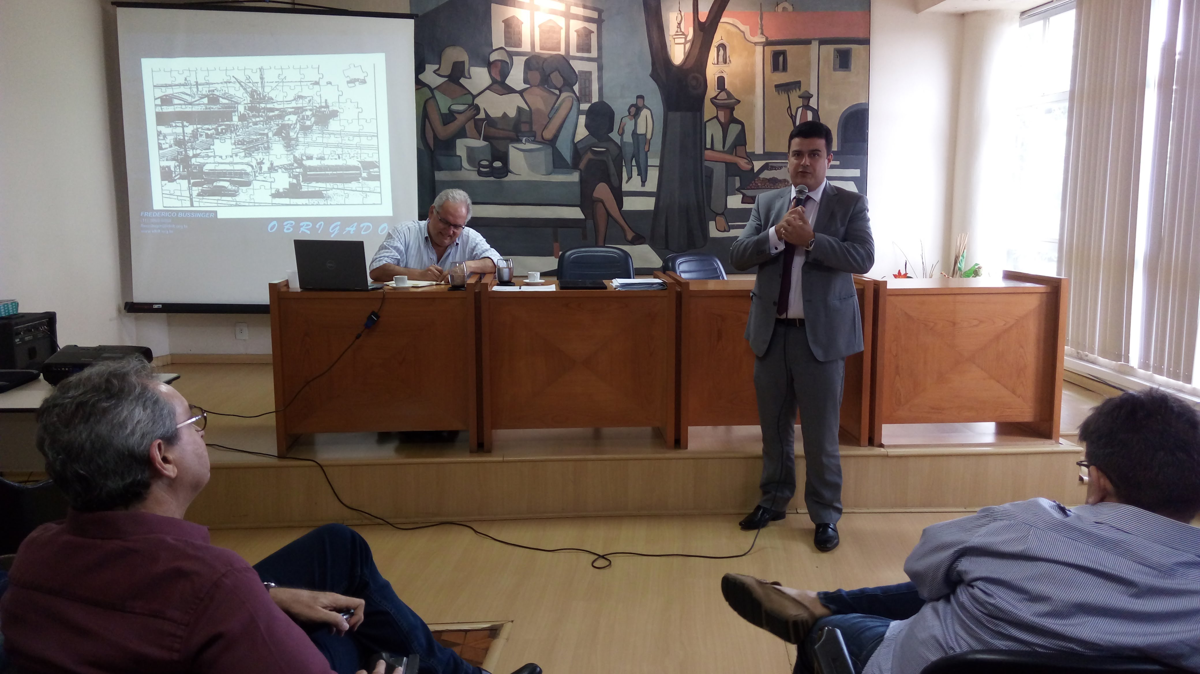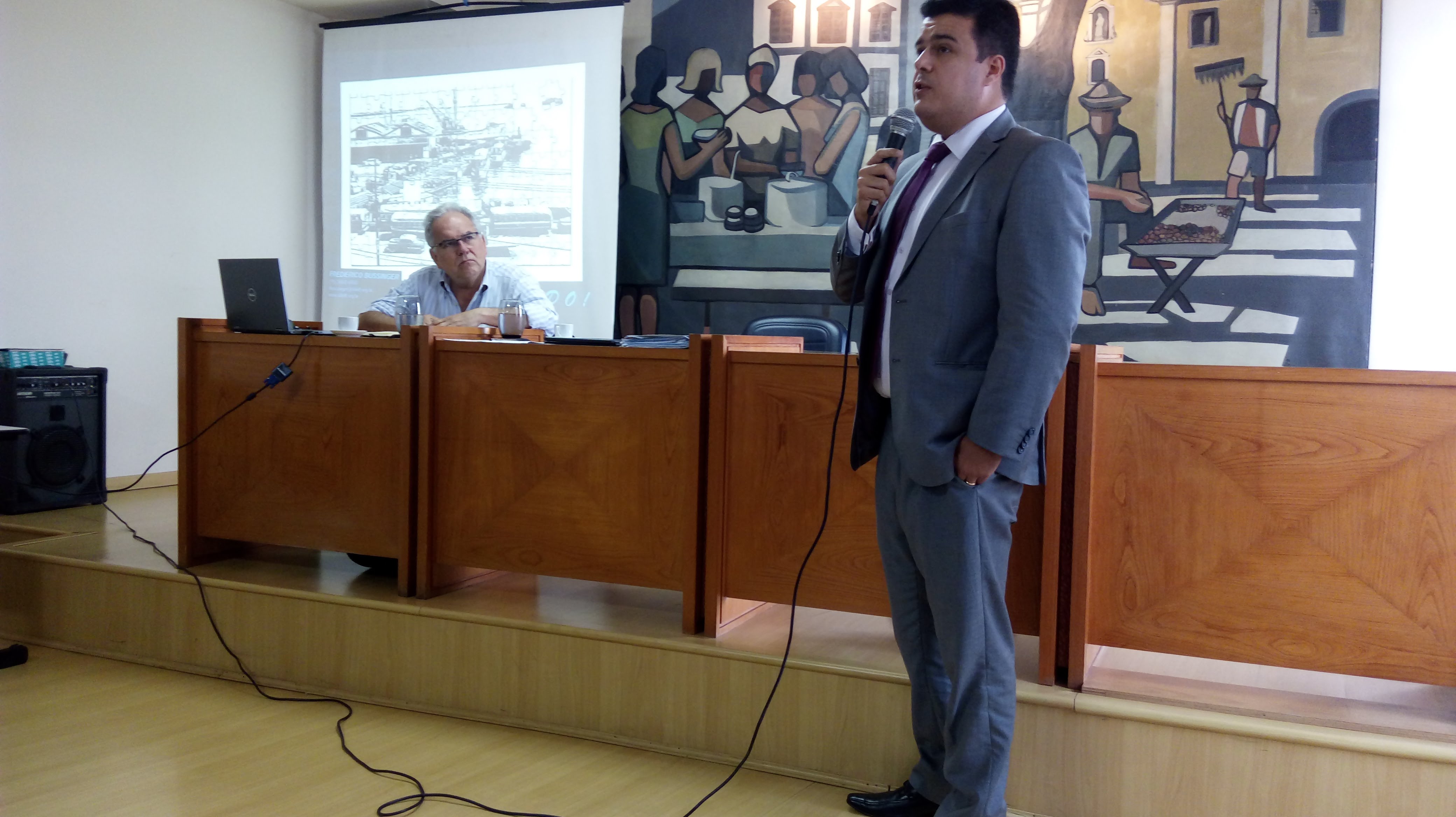 Rodrigo Nassar, diretor de Planejamento de Transportes, conduziu o evento, que recebeu como palestrante o consultor Frederico Bussinger, do Instituto de Desenvolvimento, Logística, Transporte e Meio Ambiente, contratado elaborar as referidas políticas.