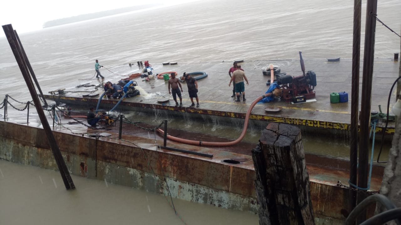 Já estão em andamento os serviços de resgate e recuperação do flutuante do Porto de Camará, em Salvaterra, na Ilha do Marajó, que submergiu no último domingo (13).
